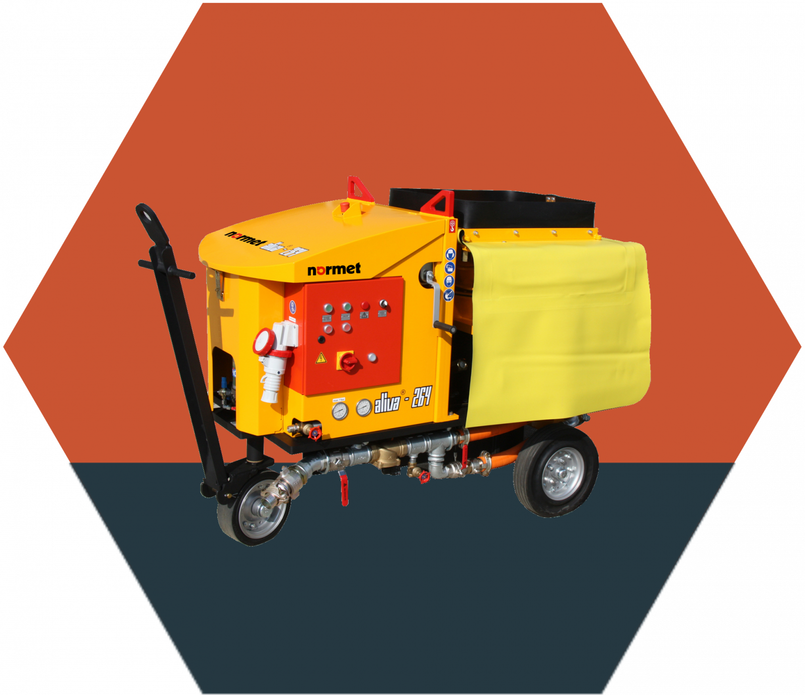 NORMET PICCOLA Cliquez ici pour plus d'informationsMachine de projection compacte, légère et facile d'utilisation pour projection voie sècheVersions :Electrique"Standard" : 2 vitesses "TOP" : Variateur pour ajustement continu du débit PneumatiqueDieselDébit théorique :0,8 à 3 m3/h